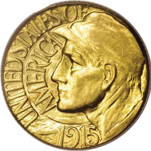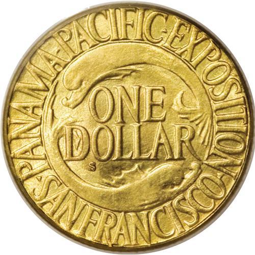 <B>1915-S G$1 Panama-Pacific Gold Dollar MS65 PCGS.</B></I> One of five Panama-Pacific coin types struck at the San Francisco Mint in 1915 to commemorate the opening of the Panama Canal. This Gem gold dollar displays peach-gold surfaces that are imbued with tints of light green and a blush or two of deeper orange. Impeccably preserved and sharply struck. Karl Stecher, Sr. purchased this piece for $3.00 from E.K. Washburn on December 1935. A hobby envelope with the notes "1915 $1.00 unc Panama Pacific E.K. Washburn Dec. 1935 $3.00."<BR><I>From The Stecher Collection.</B></I><BR><BR><b>Shipping:</b> Coins & Currency (<a target="_blank" href="http://www.heritageauctions.com/common/shipping.php">view shipping information</a>)
