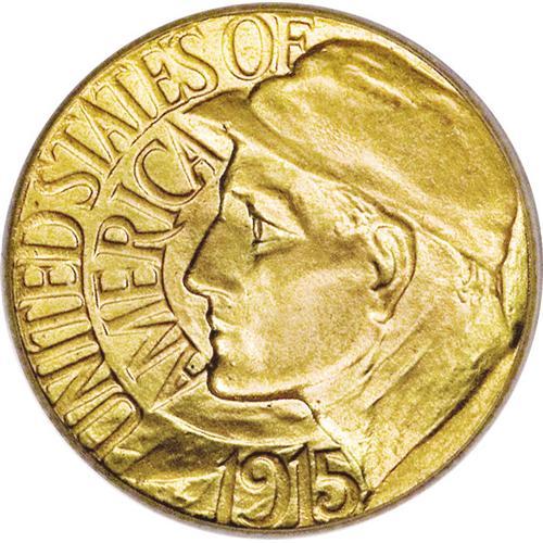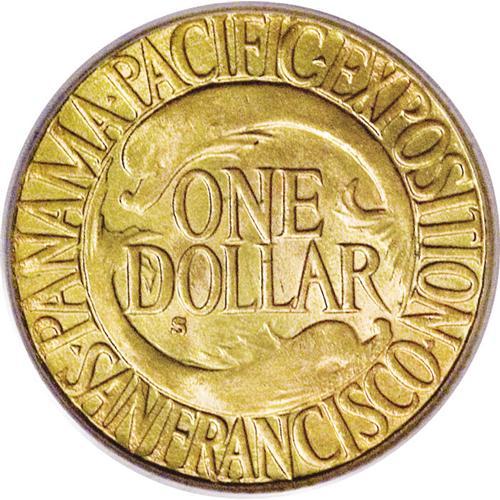 <B>1915-S G$1 Panama-Pacific Gold Dollar MS66 PCGS.</B></I> Light apple-green blends with rich pumpkin-gold. This lustrous Premium Gem has intricately struck devices, and only a whisper of incompleteness of strike along the left border. Thorough evaluation of the reverse with the aid of a loupe locates a couple of pinpoint specks of aqua residue.<BR><BR><b>Shipping:</b> Coins & Currency (<a target="_blank" href="http://www.heritageauctions.com/common/shipping.php">view shipping information</a>)