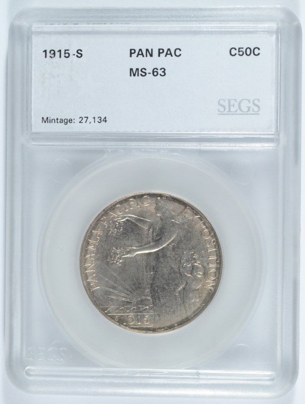 1915-S PAN-PACIFIC COMMEMORATIVE HALF DOLLAR, SEGS MS-63,