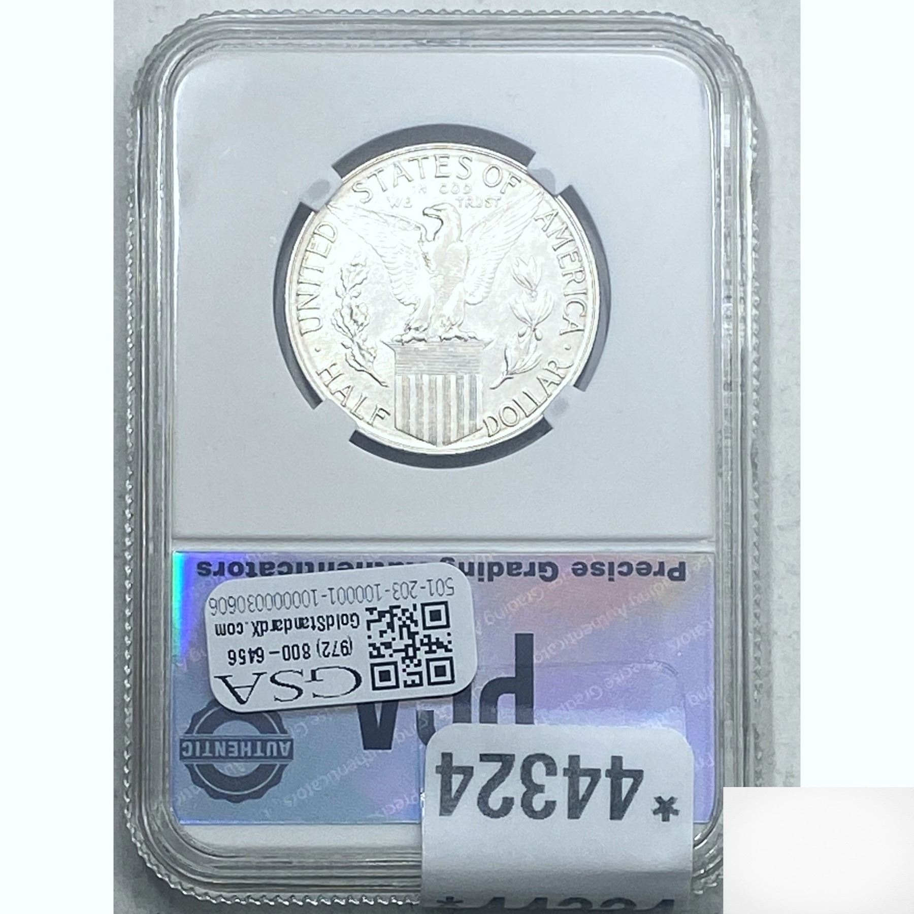 e. Coins sold referencing a third-party grading service are sold “AS IS” without any express or implied warranty, except for a guarantee by GSA that they are genuine. Removal or alteration of the holder, voids all of Bidder’s claims concerning that Product. Certain warranties may be available from the grading services and Bidders are referred to them for further details: Numismatic Guaranty Corporation (NGC), PO Box 4776, Sarasota, FL 34230, www.ngccoin.com/services/writtenguarantee.asp; Professional Coin Grading Services (PCGS), PO Box 9458, Newport Beach, CA 92658, www.pcgs.com/guarantee.html; ANACS, 6555 S. Kenton St., Ste. 303, Englewood, CO 80111; and Independent Coin Grading Co. (ICG), 7901 East Bellview, Ave., Suite 50, Englewood, CO 80111.