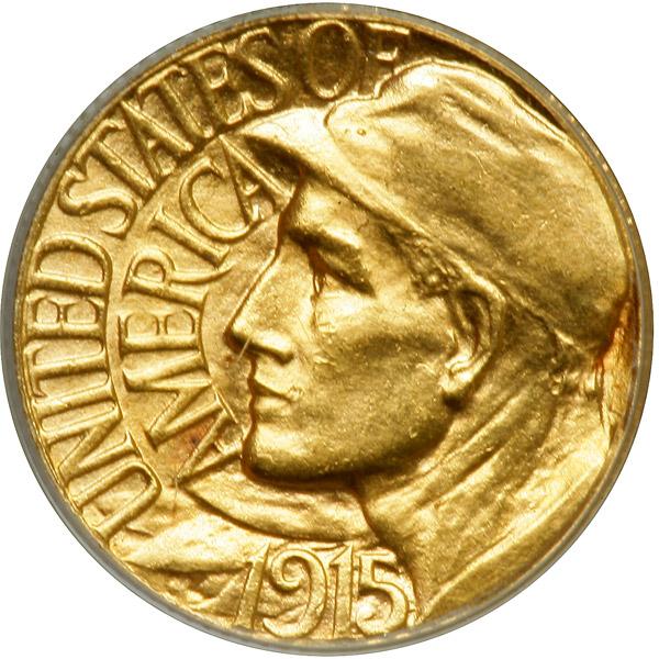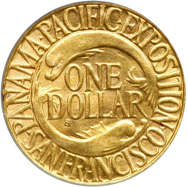 1915-S Panama-Pacific Gold Dollar. ANACS graded MS-64. A nice untoned coin (PCGS # 7449) .