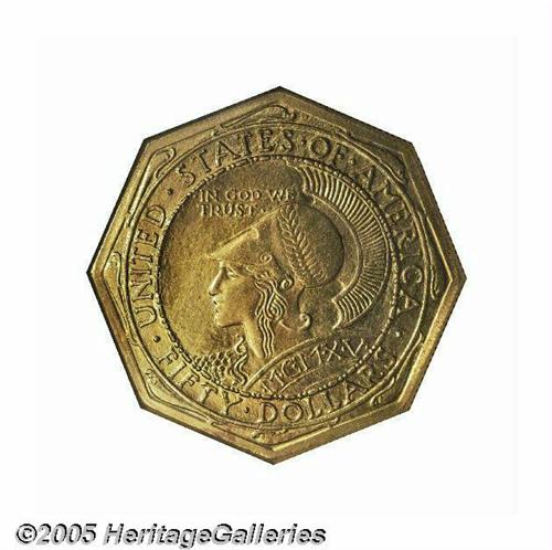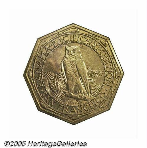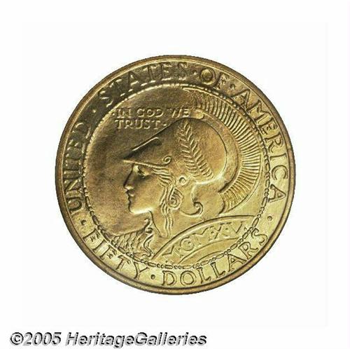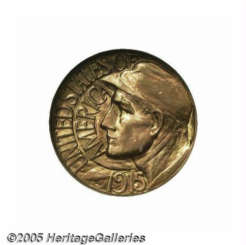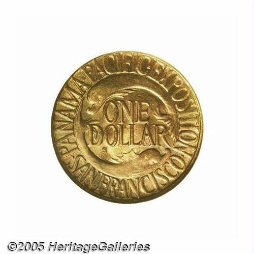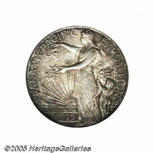<B>1915-S Panama-Pacific Set NGC.</B></I> This is the most famous set of these coins, and the present auction appearance is the first time this set has ever been offered for public competition. Each of the first coins struck from the dies of the half dollar, gold dollar, gold quarter eagle, the round and octagonal fifty dollar coins were gathered together and presented to Charles C. Moore, the president of the Exposition. The first octagonal gold coin was struck by Mint Superintendent T. W. H. Shanahan himself. All of the #1 or first strike specimens were placed in a special gold presentation case by Shreve & Co. This set is photographed in <I>Silver & Gold Commemorative Coins 1892 to 1954</B></I> by Anthony Swiatek and Walter Breen. Without a doubt, this set is one of the most historic and important of all commemorative issues and will certainly become the highlight of any advanced collection.<BR><BR> The 1915 Panama-Pacific Exposition celebrated the opening of the Panama Canal on August 15, 1914. In addition, the celebration commemorated the 400th anniversary of the discovery of the Pacific Ocean by Balboa. Competition to host the fair was intense among cities, with President Taft announcing that San Francisco was selected in 1911. San Francisco was still recovering from the devastating earthquake and fire of 1906, and this international event helped provide employment and restore much civic pride to a city, which had literally been knocked to its knees. The site chosen for the Exposition is the current Marina District, which in 1911 was a mud flat. In all, 635 acres of mud were reclaimed for building sites, and construction of numerous buildings consumed over one hundred million feet of lumber and employed a small army of construction workers for three years. Landscape architect John McLaren, (also the designer of Golden Gate Park) was in charge of the exposition's landscaping, and worked closely with the many different architects involved in the project to ensure a harmonious appearance.<BR><BR> General Electric was in charge of lighting the fair, and numerous hidden colored spotlights were employed to give the buildings an ethereal glow in the evenings. The magical effect changed the way fairs were illuminated from that point forward. The Exposition proved so popular that many people returned again and again to enjoy the many exhibits and enjoy the world cuisine that was offered by the many countries represented.<BR><BR> Congress authorized the coinage for the convention on January 16, 1915, which included up to 3,000 gold coins of the $50 denomination, 10,000 gold coins of $2.50 denomination, 25,000 gold coins of $1 denomination and 200,000 silver coins of the 50 cent denomination. It is interesting to note that the authorizing act also included a provision to allow the Secretary of the Treasury at his discretion, to actually coin the silver half dollars at the Exposition itself as part of the educational exhibit from the Mint. However, popular lore to the contrary, the coins were actually struck in the San Francisco mint on a 14-ton hydraulic press shipped from the Philadelphia Mint expressly for the striking of the $50 coins. The smaller denominations sold fairly well to attendees, but the $50 gold coins were well beyond the means of most of the population at that time. All unsold coins were to be melted after the Exhibition closed. Congress authorized $5,000 to pay for the coinage, providing this sum was repaid after the Exhibition closed. Hence, the premium required above face value for these commemorative coins, as the costs of producing them would obviously exceed the cost of striking regular issue coins at the various mints.<BR><BR> The half dollar was designed by Charles E. Barber, designer of the Barber silver coinage, Liberty nickel, the Hawaiian coinage of 1883, Cuban coinage starting in 1915, the Isabella and Lafayette coinage and numerous other coins, medals and commemoratives of the period. Barber's choice for the Panama-Pacific Exposition half dollar depicts Liberty scattering flowers from her cornucopia held by a cherub, with the setting sun seen behind, while the reverse shows an eagle perched on a shield with wings outstretched and flanked by an oak (strength) and olive (peace) branch beneath the wings. Current research suggests that George Morgan may have been involved in the reverse of this issue.<BR><BR> The gold dollar was designed by Charles Keck, who also designed the Vermont and Lynchburg Sesquicentennial Half Dollars. The obverse depicts a laborer symbolizing the canal workers who built the Panama Canal coupled with the reverse which shows two dolphins, a reference to the meeting of the Atlantic and Pacific Oceans through the Canal.<BR><BR> The quarter eagle was also designed by Charles E. Barber, in collaboration with George Morgan, and this design employs rich allegorical engraving. Liberty or Columbia rides sidesaddle on a hippocampus while holding a caduceus. In can be assumed that the horse-fish combination suggests the labor saved by shipping goods through the new canal instead of moving them across country with the labor of horses. Perhaps the caduceus symbolizes Col. Gorgas's medical triumph in developing a vaccine, which greatly reduced malaria and yellow fever epidemics. These epidemics had decimated the canal workers and helped cause the previous canal project to end in failure in the early 1880s. The reverse shows a stylized eagle perched on a standard, with the denomination below.<BR><BR> Robert Aitken designed the fifty dollar gold pieces, one in octagonal format, the other round. The obverse shows Liberty as Athena, with an Athenian helmet with the date below, and surrounded by UNITED STATES OF AMERICA and FIFTY DOLLARS. Athena was the Greek goddess of wisdom, agriculture and such things as spinning and weaving and was often paired with the owl on the reverse. On the octagonal coins, small dolphins were tucked into the corners of the obverse