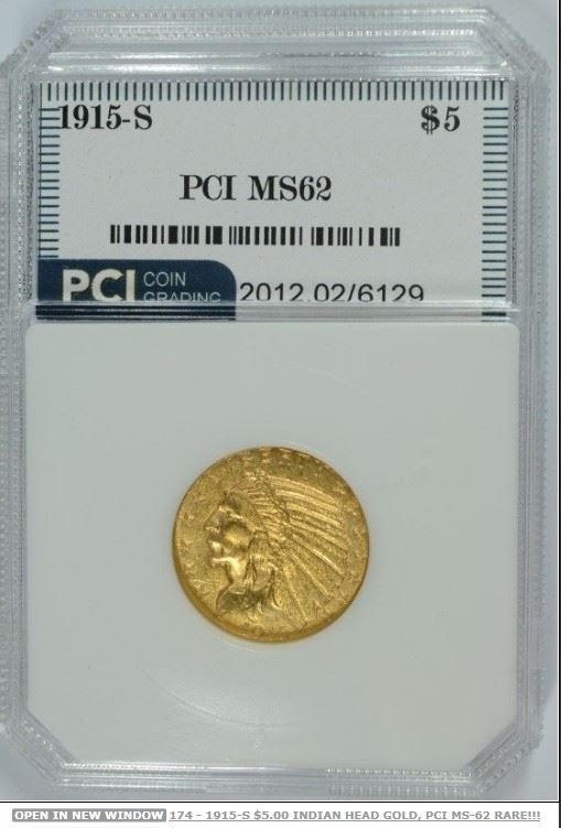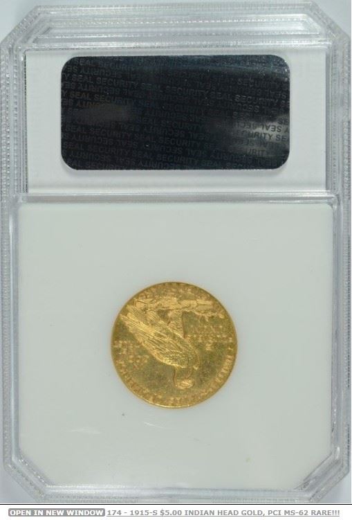 1915-S US Gold 5 Dollar Indian Head - PCI MS62 - Value: $8500.00 (US)