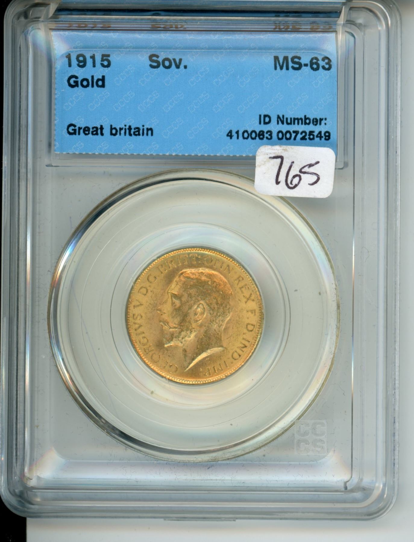 1915 Sov. Gold coin - MS-63 - CCCS Graded