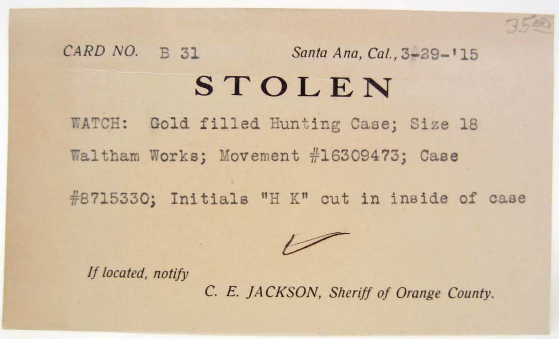 stolen gold filled hunting case.