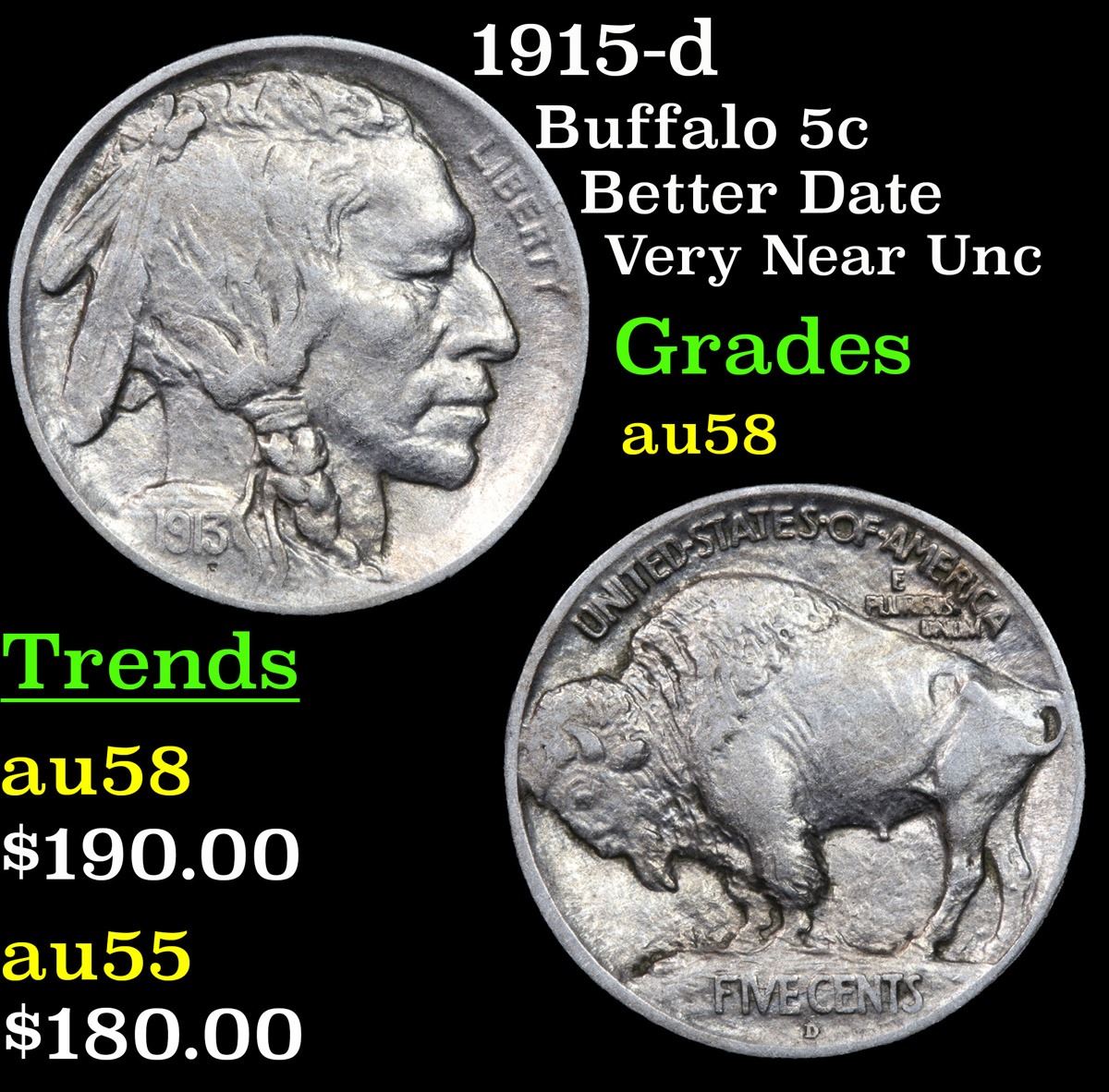 1915-d Better Date Very Near Unc Buffalo Nickel 5c Grades Choice AU/BU Slider.