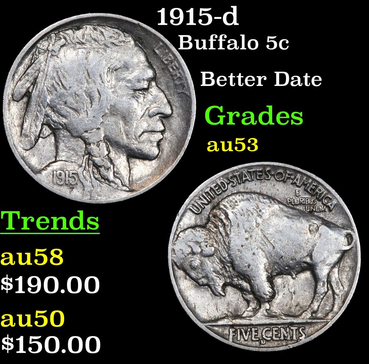1915-d Better Date . Buffalo Nickel 5c Grades Select AU.