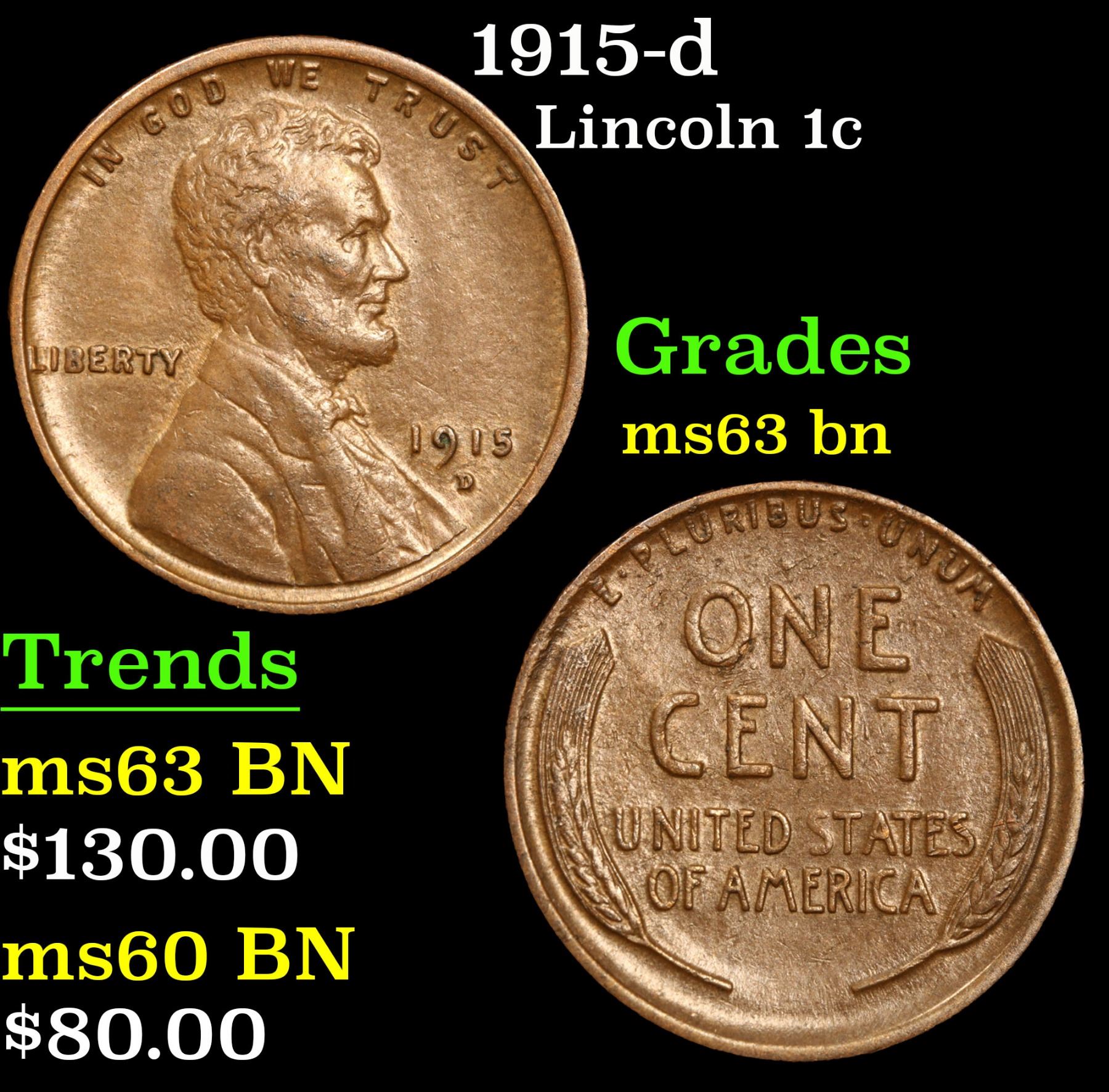 1915-d . . Lincoln Cent 1c Grades Select Unc BN.