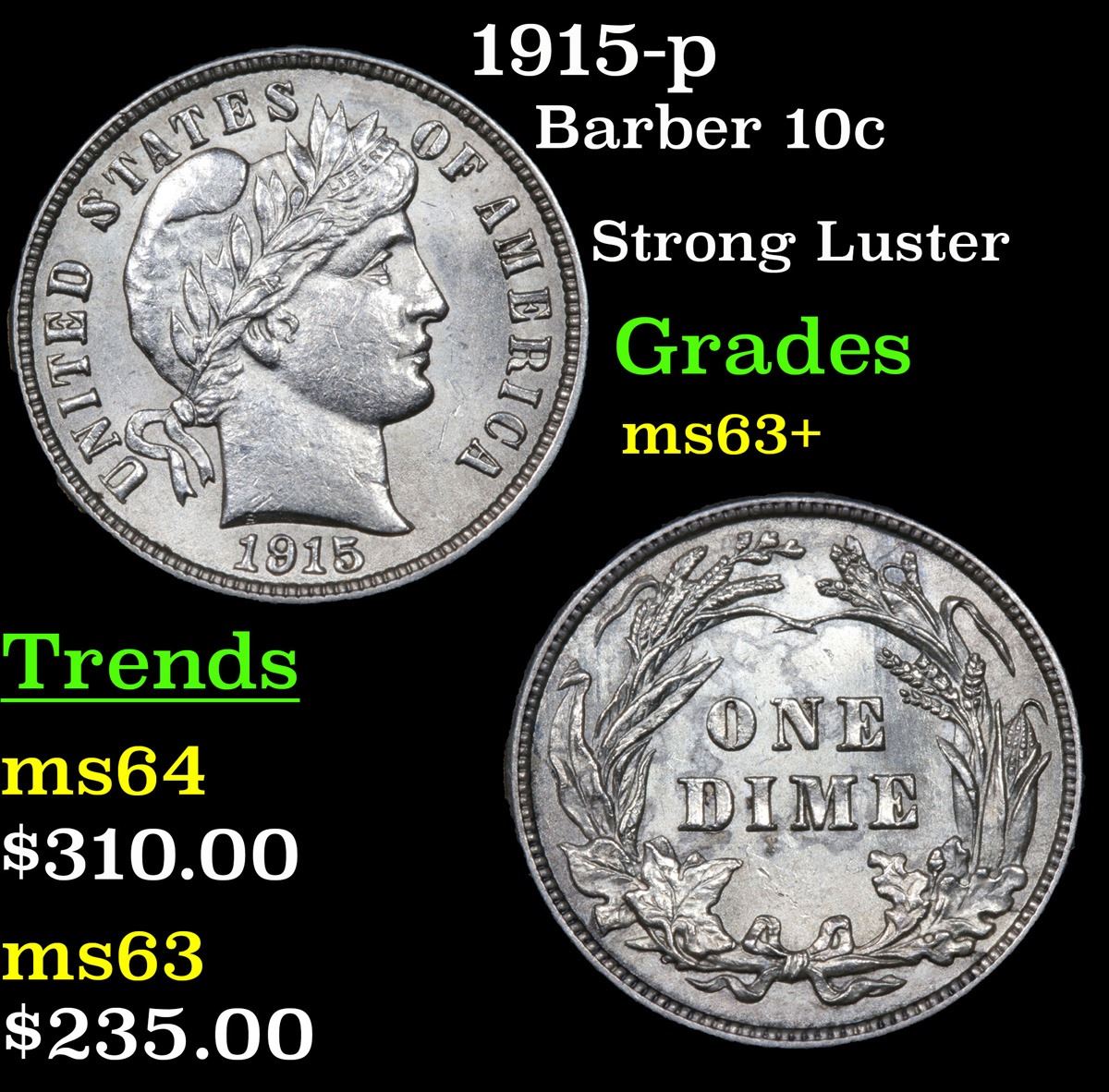 1915-p Strong Luster . Barber Dime 10c Grades Select+ Unc.