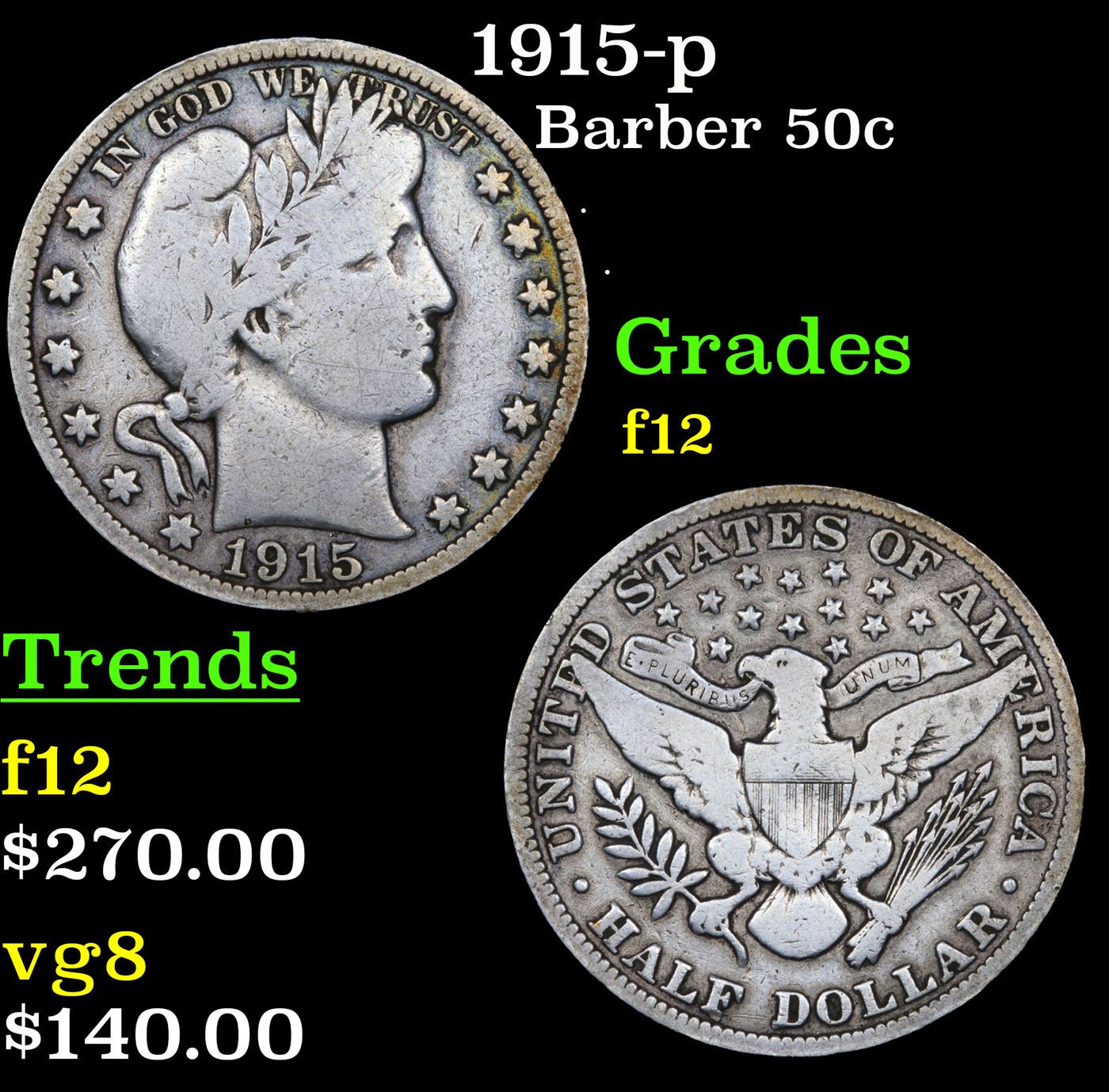 1915-p Barber Half Dollars 50c Grades f, fine