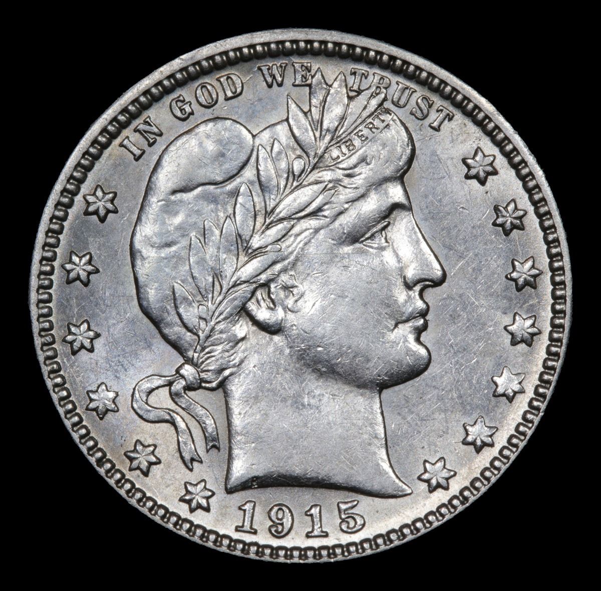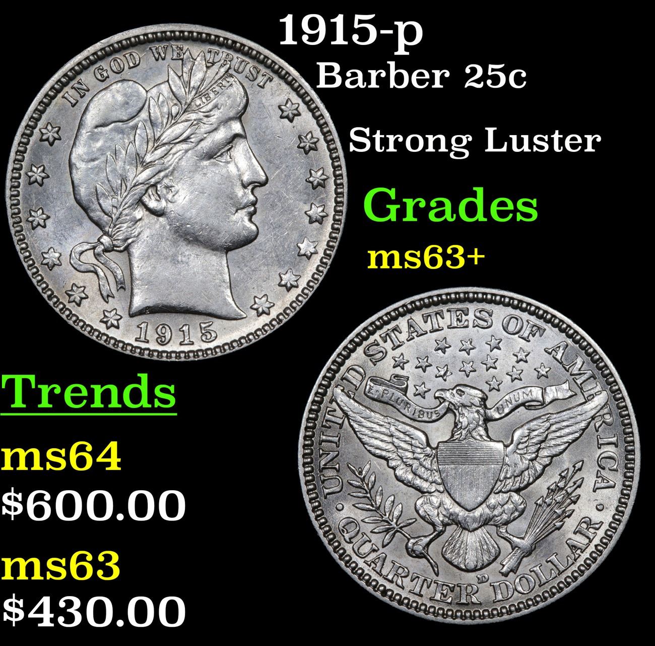 1915-p Strong Luster . Barber Quarter 25c Grades Select+ Unc.