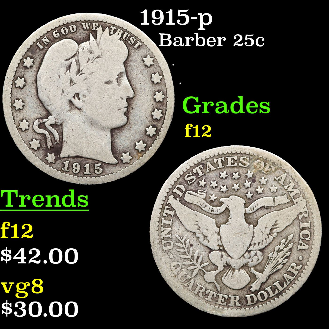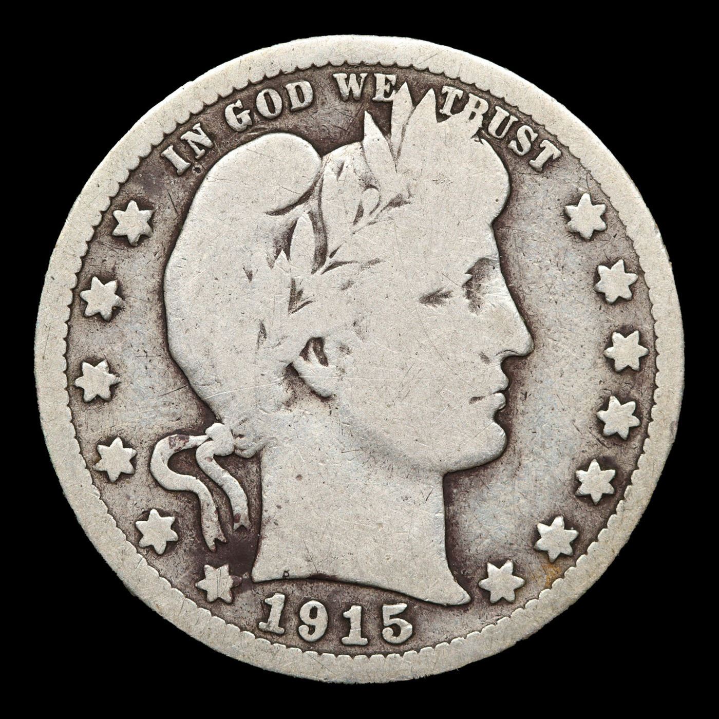 1915-p Barber Quarter 25c Grades f, fine.
