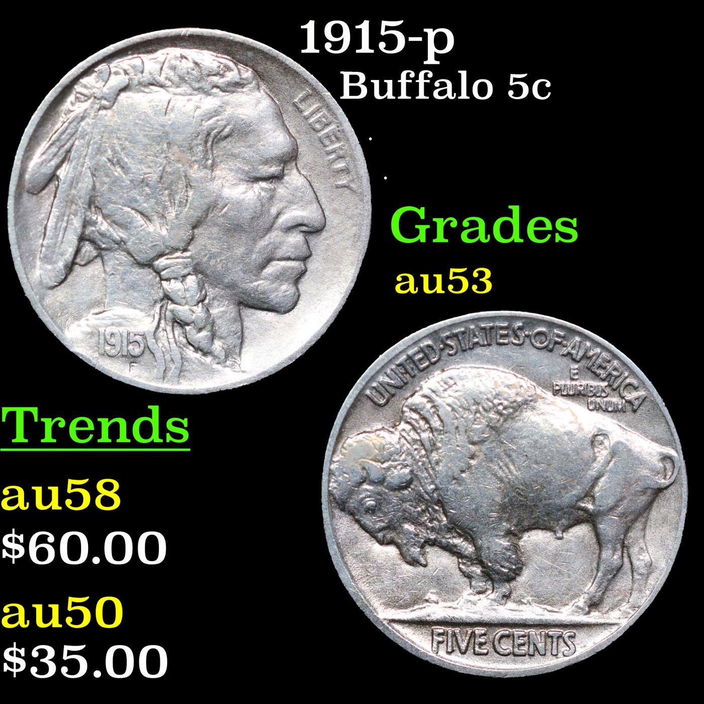 1915-p Buffalo Nickel 5c Grades Select AU.