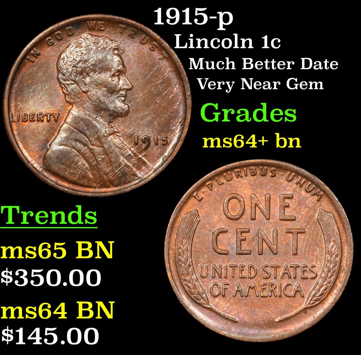 1915-p Much Better Date Very Near Gem Lincoln Cent 1c Grades Choice+ Unc BN.