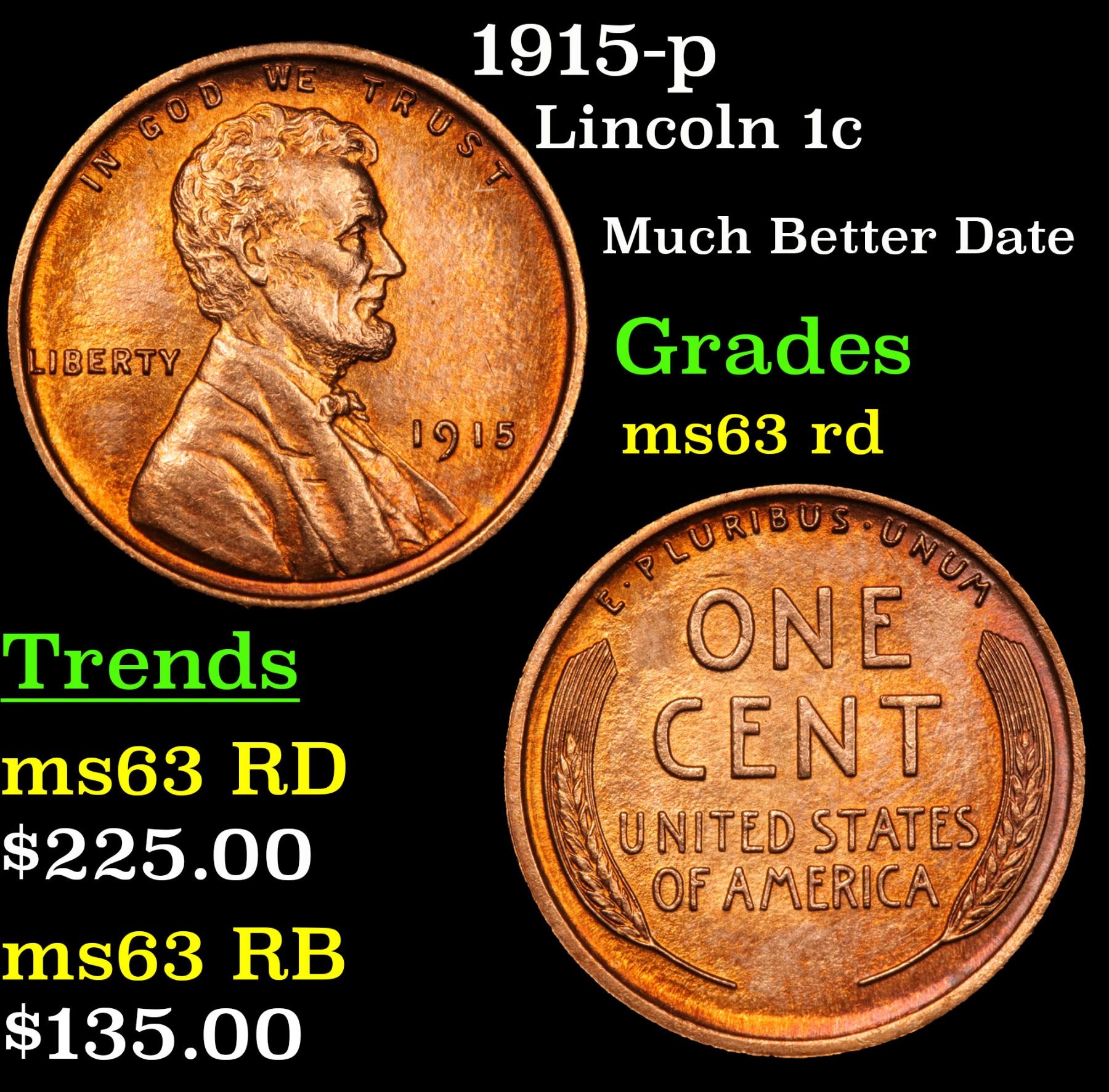 1915-p Lincoln Cent 1c Grades Select Unc RD.