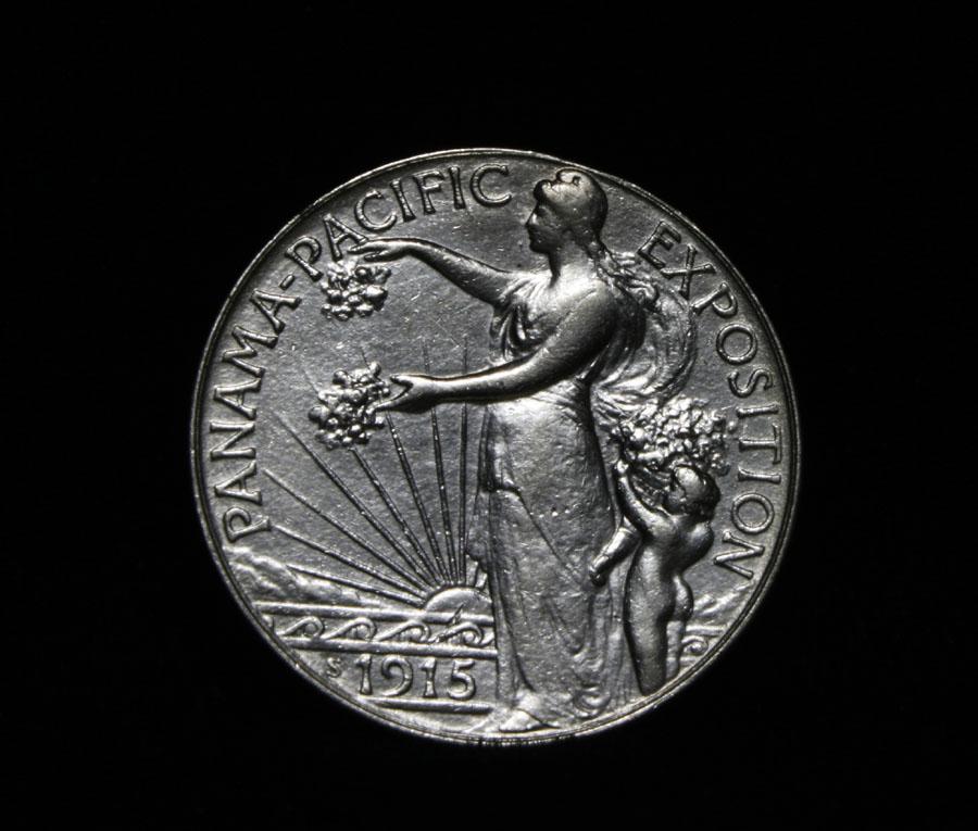 Exceptionally Rare Commemorative. Blast white with good eye appeal. The Pan Pac was minted along with 4 other coins to commemorate the completion of the Panama Canal and distributed at the Panama pacific exposition in San Francisco which also celebrated the renewal of san Francisco since the Great Fire. When Examining a{an Pac Half Dollar note that there is a problem with Pan-Pac halves in its strike: Weakness is often evident on Columbia’s head, cap, arm and body, also on the eagle's breast feathers and claws. Occasionally, coins are seen with a rim indentation near the periphery on each side; this is a mint caused problem and should not be factored into the grade. When grading lightly circulated examples, friction is first evident on Columbia's shoulder and on the eagle's breast. Coin World's Coin Values Lists the au58 at $525 and The Wholesale Greysheet lists au50 at $365 and ms60 at $425. Estimated Value $400