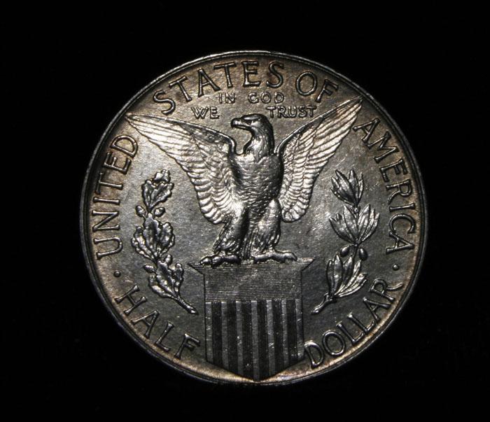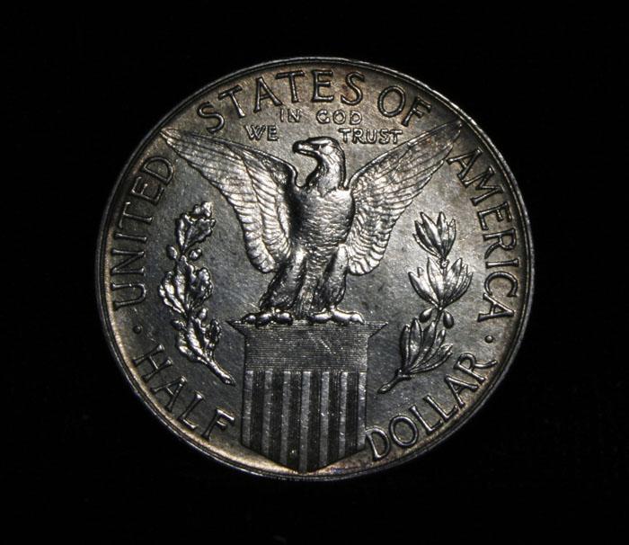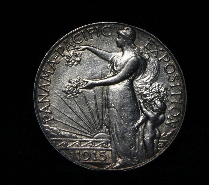 Exceptionally Rare Commemorative. Beautiful golden toning. The Pan Pac was minted along with 4 other coins to commemorate the completion of the Panama Canal and distributed at the Panama pacific exposition in San Francisco which also celebrated the renewal of san Francisco since the Great Fire. When Examining a{an Pac Half Dollar note that there is a problem with Pan-Pac halves in its strike: Weakness is often evident on Columbia’s head, cap, arm and body, also on the eagle's breast feathers and claws. Occasionally, coins are seen with a rim indentation near the periphery on each side; this is a mint caused problem and should not be factored into the grade. When grading lightly circulated examples, friction is first evident on Columbia's shoulder and on the eagle's breast. Coin World's Coin Values Lists the ms64 at $1700 and The Wholesale Greysheet lists ms64 at $950. Estimated Value $1000