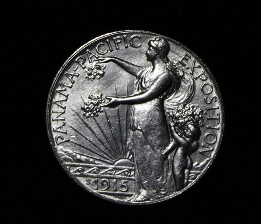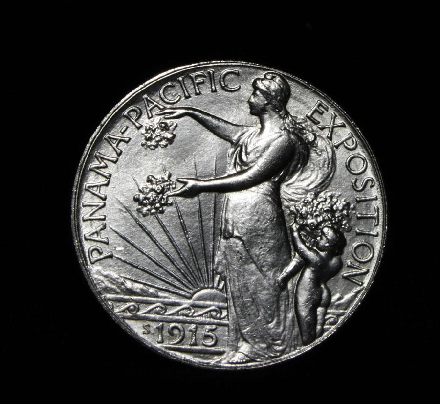 Exceptionally Rare Commemorative. Beautiful Blast white example. The Pan Pac was minted along with 4 other coins to commemorate the completion of the Panama Canal and distributed at the Panama pacific exposition in San Francisco which also celebrated the renewal of san Francisco since the Great Fire. When Examining a{an Pac Half Dollar note that there is a problem with Pan-Pac halves in its strike: Weakness is often evident on Columbia’s head, cap, arm and body, also on the eagle's breast feathers and claws. Occasionally, coins are seen with a rim indentation near the periphery on each side; this is a mint caused problem and should not be factored into the grade. When grading lightly circulated examples, friction is first evident on Columbia's shoulder and on the eagle's breast. Coin World's Coin Values Lists the ms64 at $1700 and The Wholesale Greysheet lists ms64 at $950. Estimated Value $1000