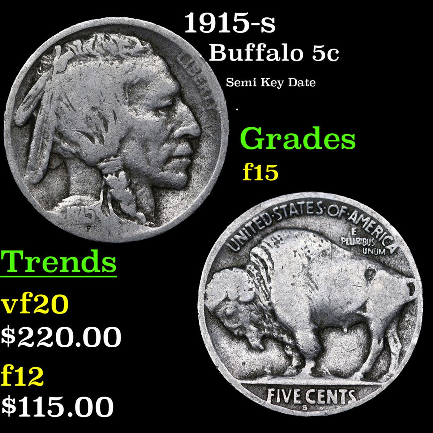 1915-s Buffalo Nickel 5c Grades f+. A tough date.