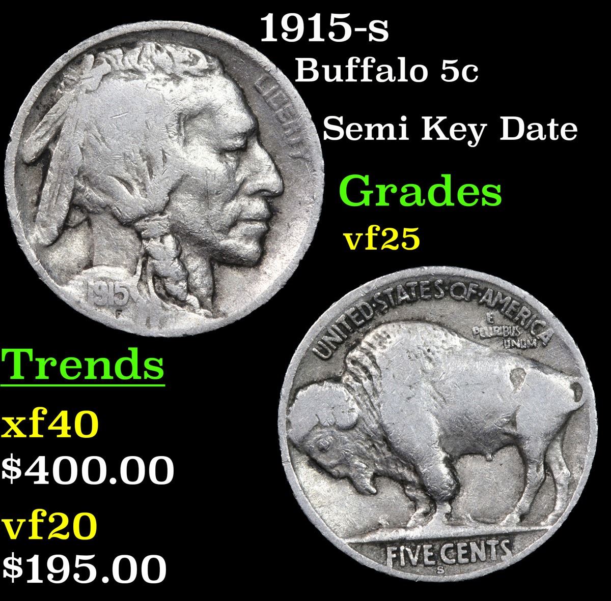 1915-s Semi Key Date . Buffalo Nickel 5c Grades vf+. A tough date.