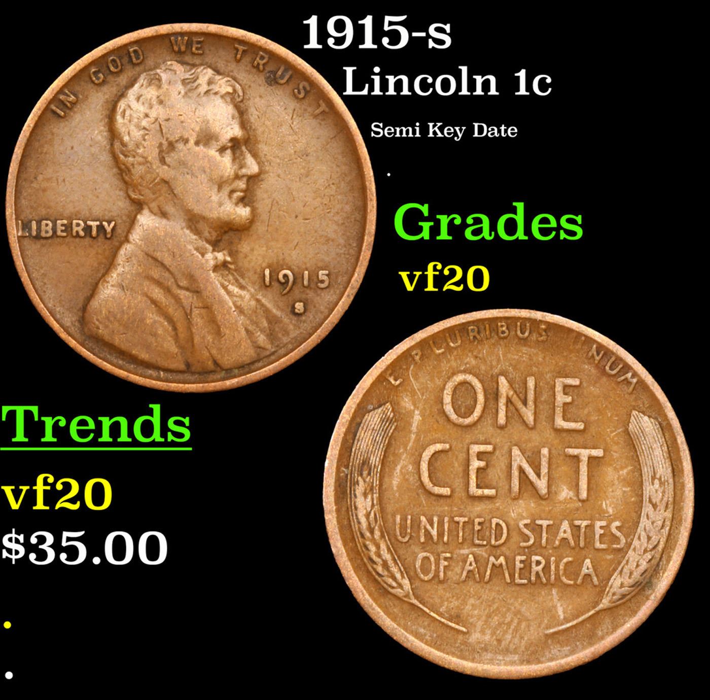 1915-s Lincoln Cent 1c Grades vf, very fine