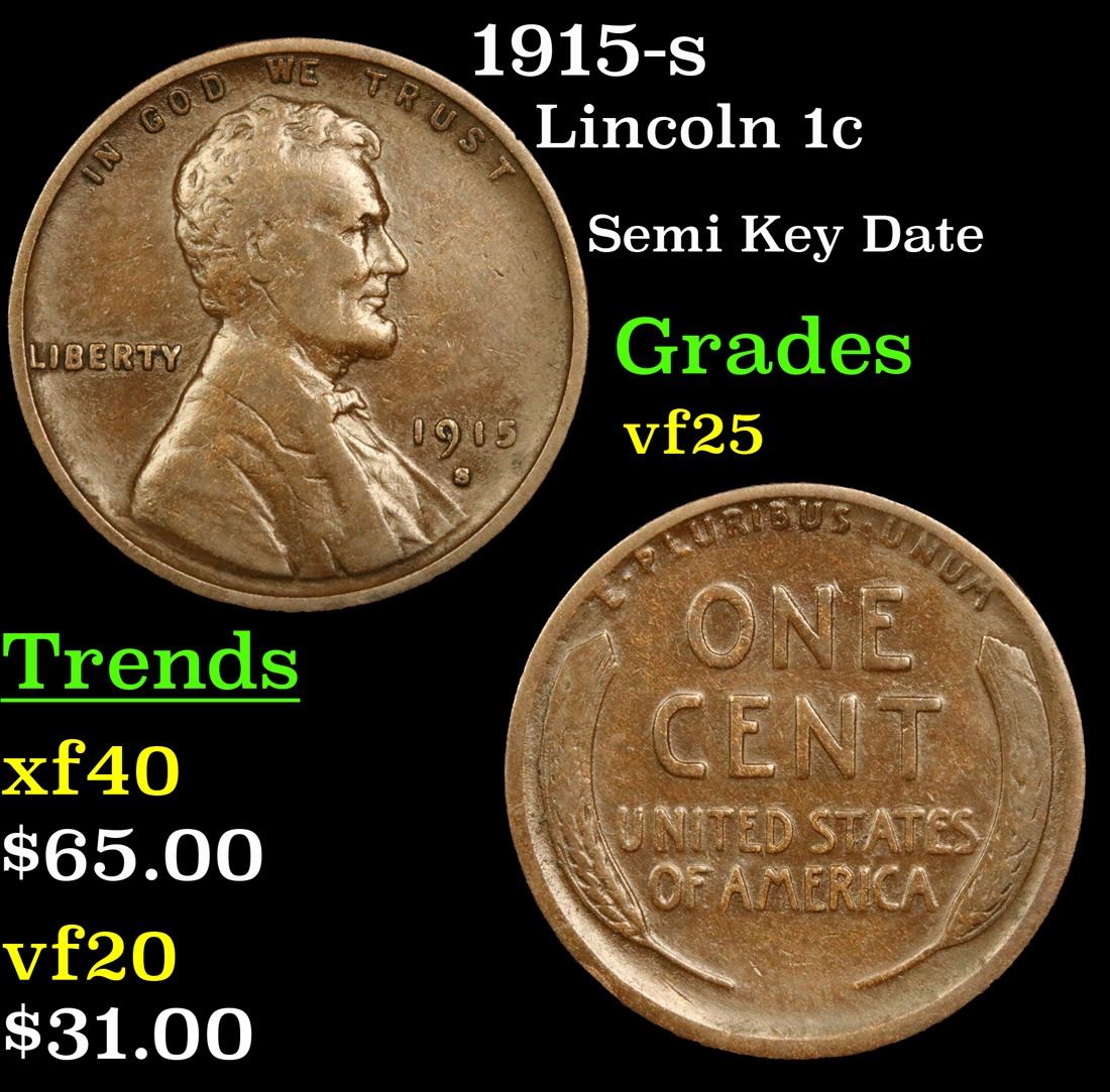 1915-s Semi Key Date . Lincoln Cent 1c Grades vf+.
