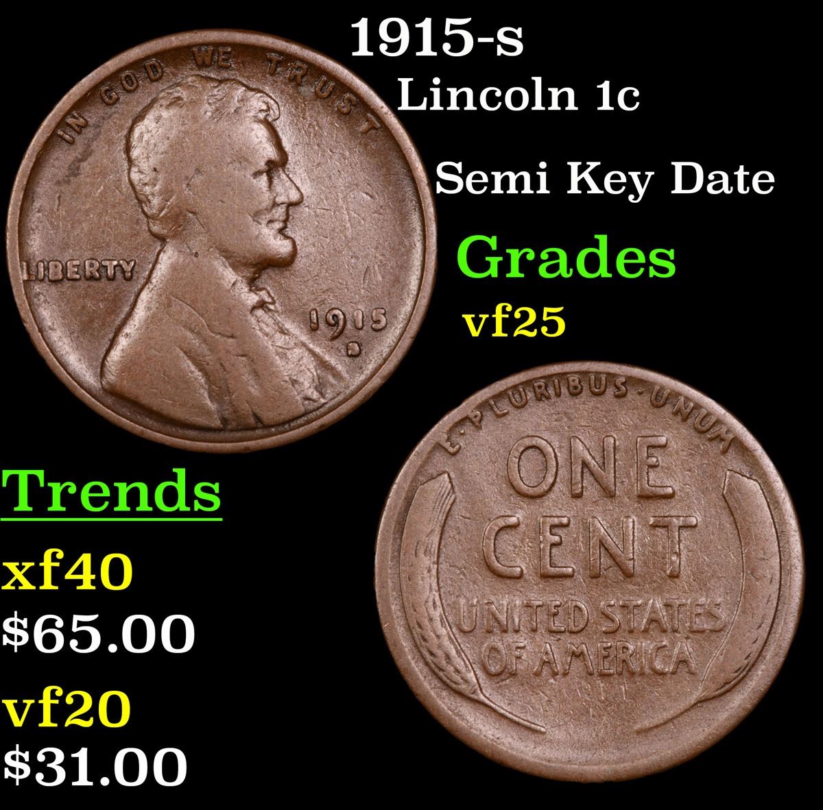 1915-s Semi Key Date . Lincoln Cent 1c Grades vf+.
