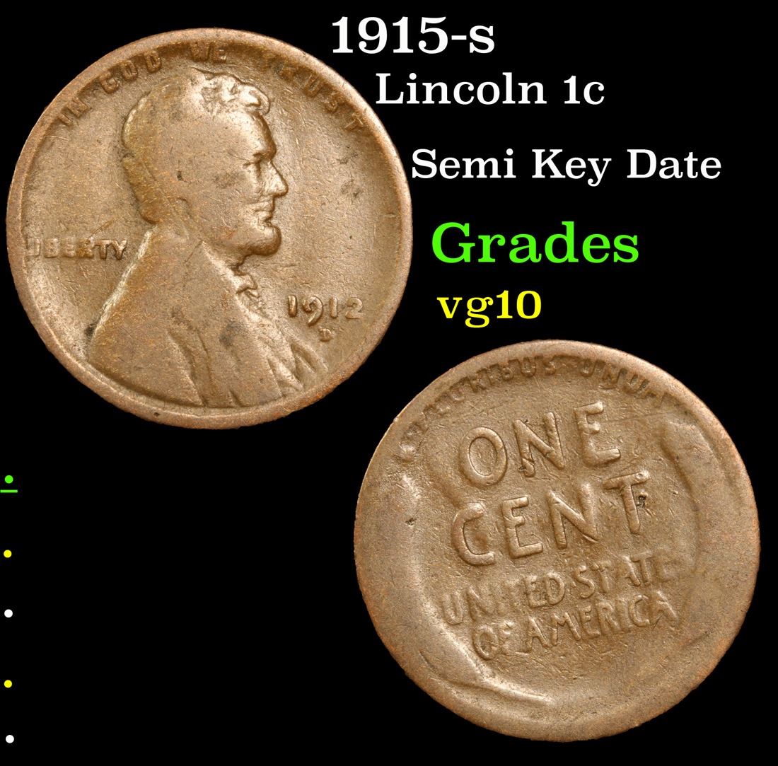 1915-s Semi Key Date . Lincoln Cent 1c Grades vg+.