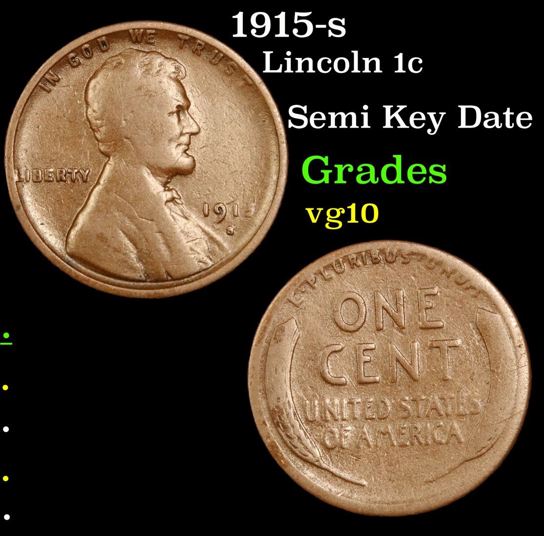 1915-s Semi Key Date . Lincoln Cent 1c Grades vg+.