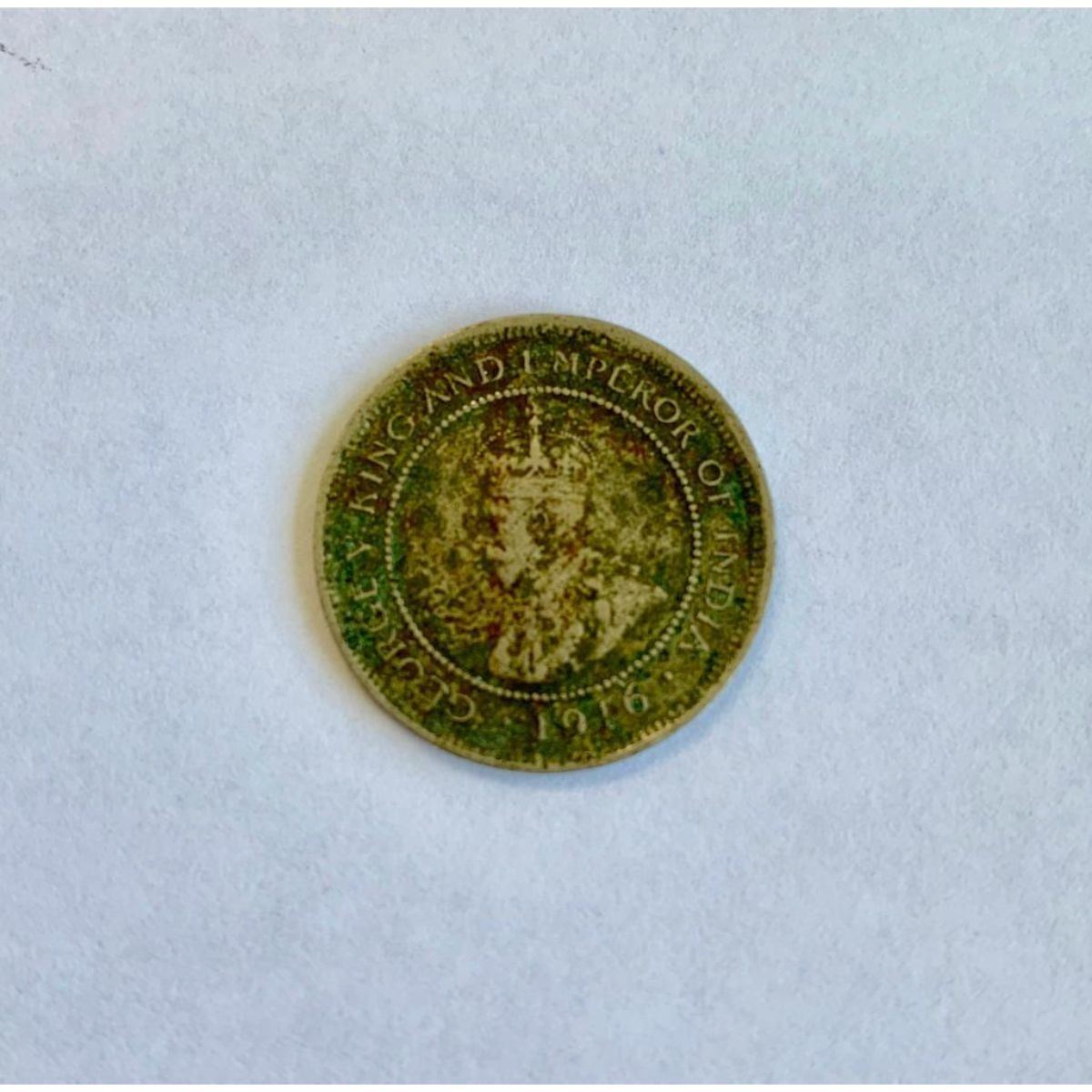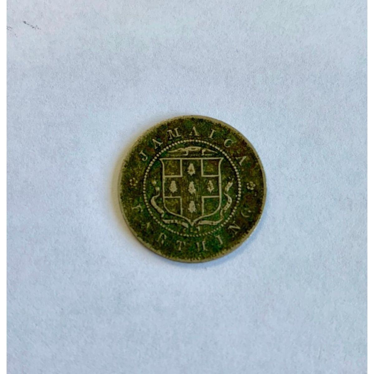 Obverse Crowned bust to the left within beaded circle Lettering: GEORGE V KING AND EMPEROR OF INDIA · 1934 · Engraver: Edgar Bertram Mackennal Reverse Alligator on shield within beaded circle. Lettering: JAMAICA INDUS UTERQUE SERVIET UNI FARTHING Engraver: George William de Saulles Edge Smooth Specifications Country: Jamaica Type: Standard circulation coin Years: 1914-1934 Value: 1 Farthing (1/960) Currency :Pound (1840-1969) Composition: Copper-nickel Weight: 2.71 g Diameter: 20 mm Thickness: 1.2 mm Shape: Round Â