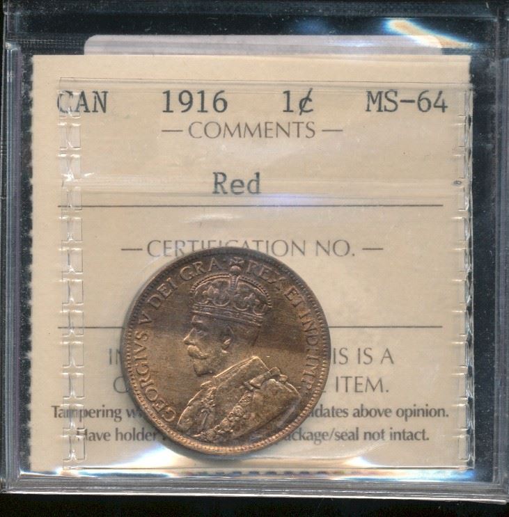 1916 1¢ ICCS MS64 RED. 75%/85% Gold-red.