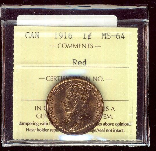 1916 1¢ ICCS MS64RD.