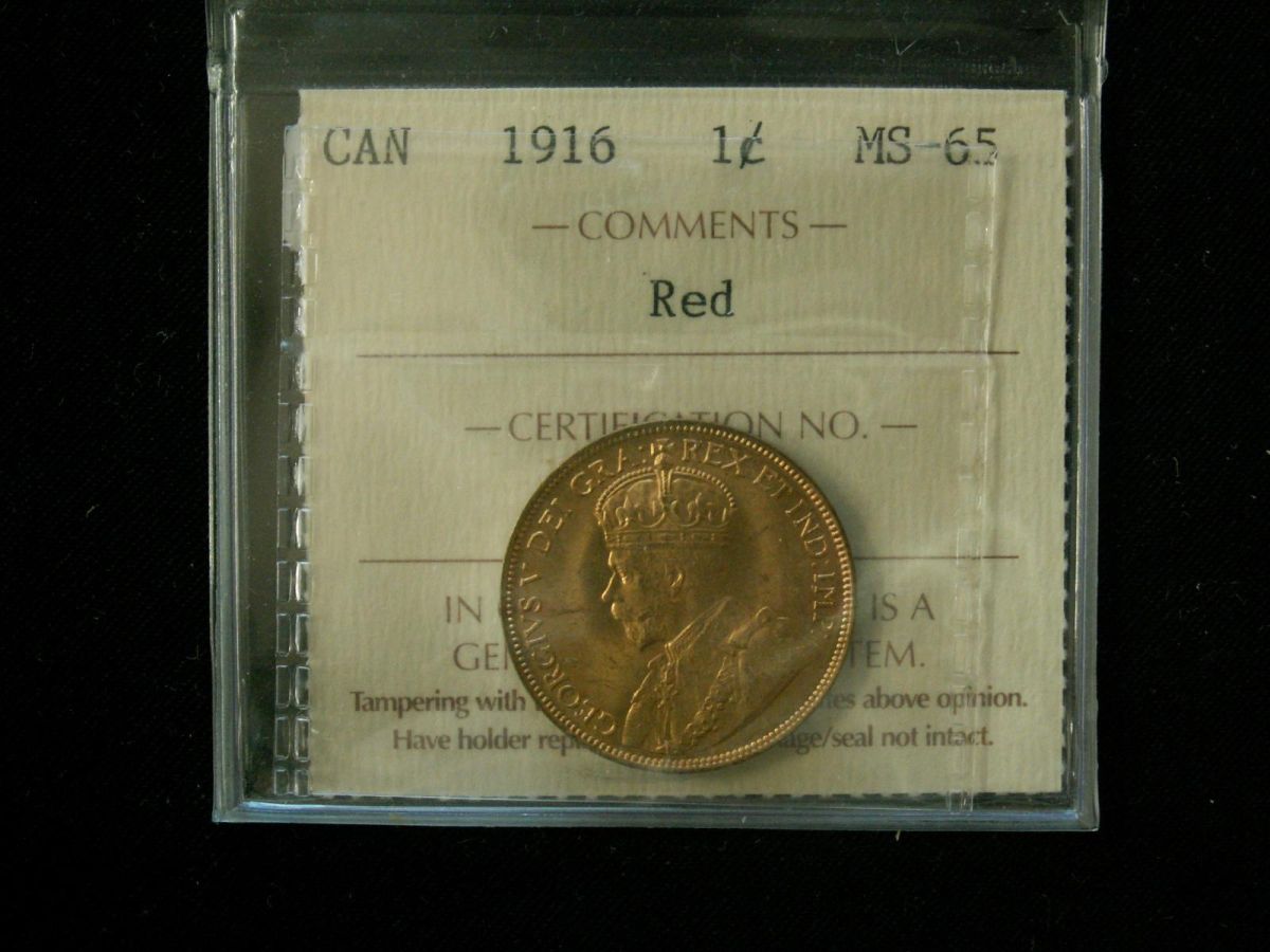 1916 1¢ ICCS MS65RD. Pristine example with mirror like fields.