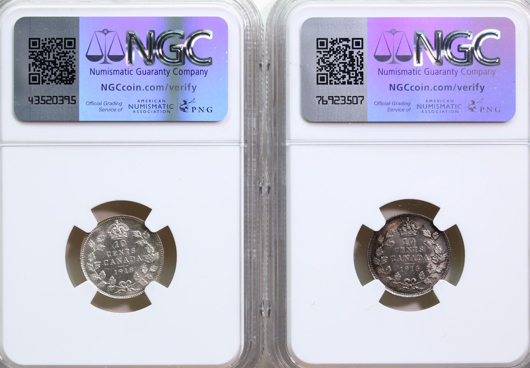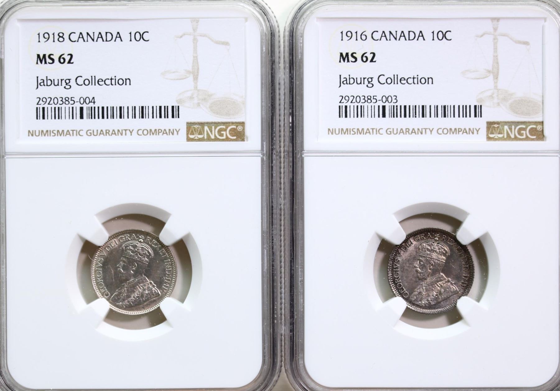 1916 10¢, 1918 Both coins NGC Choice Mint State-62 - Jaburg Collection.