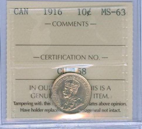 1916 10¢ ICCS MS63 Brilliant!