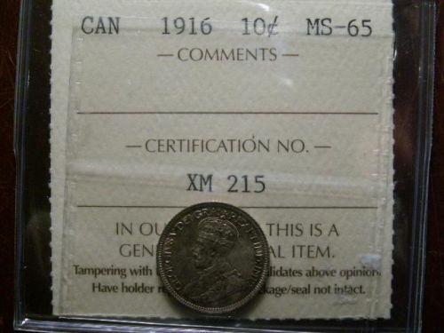 1916 10¢ ICCS MS65. Brownish and bluish tint gives this example great eye appeal. A lovely GEM example.