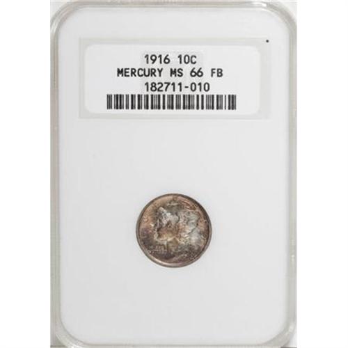 <B>1916 10C MS66 Full Bands NGC.</B></I> NGC Census: (301/95). PCGS Population (292/85). Mintage: 22,180,080. Numismedia Wsl. Price for NGC/PCGS coin in MS66: $323. (#4905)<BR><BR><B>Coin Engraver:</B> Adolph A. Weinman<BR><BR><b>Shipping:</b> Coins & Currency (<a target="_blank" href="http://www.heritageauctions.com/common/shipping.php">view shipping information</a>\)