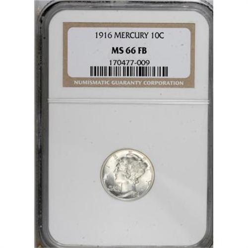 <B>1916 10C MS66 Full Bands NGC.</B></I> NGC Census: (322/94). PCGS Population (318/88). Mintage: 22,180,080. Numismedia Wsl. Price for NGC/PCGS coin in MS66: $300. (#4905)<BR><BR><B>Coin Engraver:</B> Adolph A. Weinman<BR><BR><b>Shipping:</b> Coins & Currency (<a target="_blank" href="http://www.heritageauctions.com/common/shipping.php">view shipping information</a>)