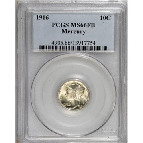 <B>1916 10C MS66 Full Bands PCGS.</B></I> PCGS Population (318/88). NGC Census: (301/95). Mintage: 22,180,080. Numismedia Wsl. Price for NGC/PCGS coin in MS66: $300. (#4905)<BR><BR><B>Coin Engraver:</B> Adolph A. Weinman<BR><BR><b>Shipping:</b> Coins & Currency (<a target="_blank" href="http://www.heritageauctions.com/common/shipping.php">view shipping information</a>)