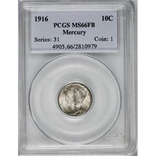 <B>1916 10C MS66 Full Bands PCGS.</B></I> PCGS Population (321/88). NGC Census: (324/96). Mintage: 22,180,080. Numismedia Wsl. Price for NGC/PCGS coin in MS66: $305. (#4905)<BR><BR><B>Coin Engraver:</B> Adolph A. Weinman<BR><BR><b>Shipping:</b> Coins & Currency (<a target="_blank" href="http://www.heritageauctions.com/common/shipping.php">view shipping information</a>)