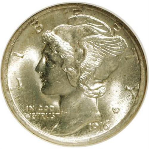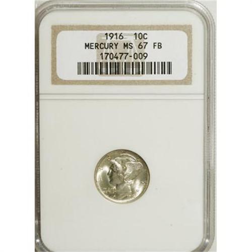 <B>1916 10C MS67 Full Bands NGC.</B></I> NGC Census: (81/14). PCGS Population (79/8). Mintage: 22,180,080. Numismedia Wsl. Price for NGC/PCGS coin in MS67: $720. (#4905)<BR><BR><B>Coin Engraver:</B> Adolph A. Weinman<BR><BR><b>Shipping:</b> Coins & Currency (<a target="_blank" href="http://www.heritageauctions.com/common/shipping.php">view shipping information</a>\)
