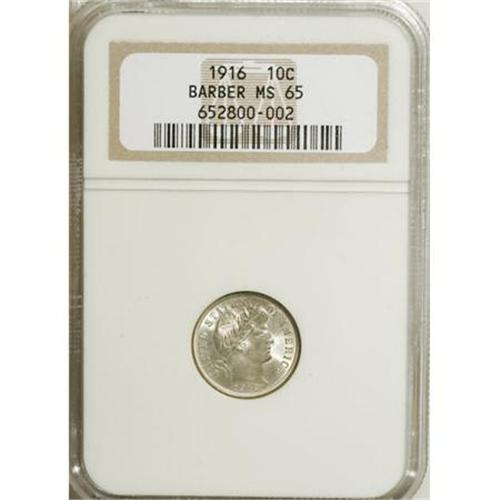 <B>1916 10C MS65 NGC.</B></I> NGC Census: (109/39). PCGS Population (89/40). Mintage: 18,490,000. Numismedia Wsl. Price for NGC/PCGS coin in MS65: $550. (#4870)<BR><BR><B>Coin Engraver:</B> Charles E. Barber<BR><BR><b>Shipping:</b> Coins & Currency (<a target="_blank" href="http://www.heritageauctions.com/common/shipping.php">view shipping information</a>\)
