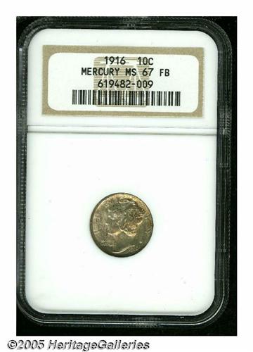 <B>1916<10C> MS67 Full Bands NGC.</B></I> Dappled apricot and lime colors embrace this lustrous and sharply struck first year Dime. The left reverse field has an inconspicuous pinscratch, otherwise, the piece is pristine.
