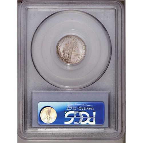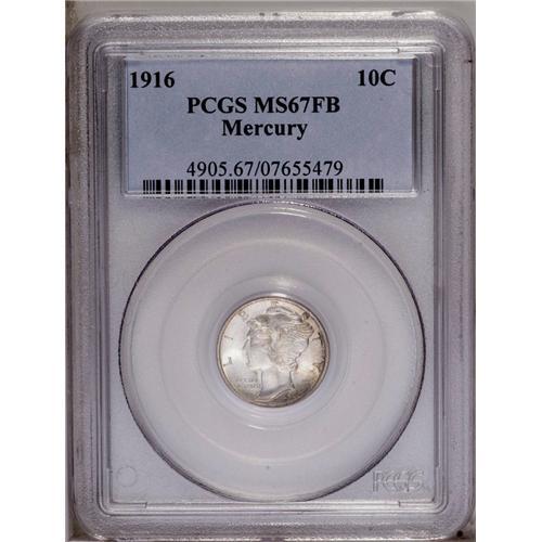 <B>1916<10C> MS67 Full Bands PCGS.</B></I> Fully struck with pleasing matte-like surface textures and lovely steel-blue and speckled tan and russet patina. Impressively preserved and near-pristine, only one tiny contact mark is noted, just below the central reverse crossbands, but you will need a good magnifier in order to find it. A beautiful Superb Gem from the first year of the Mercury dime series. Population: 77 in 67, 7 finer (3/06).