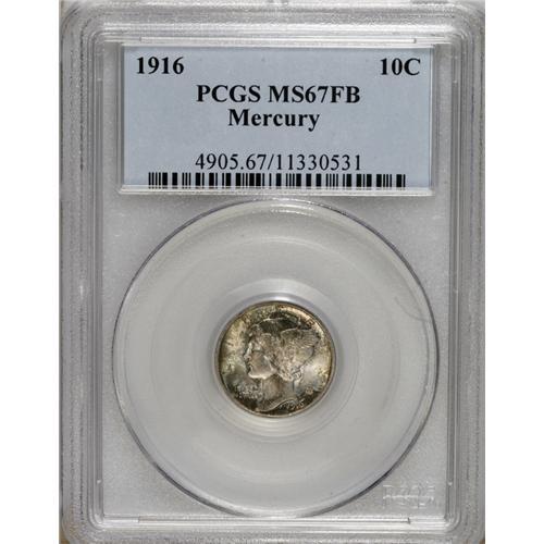 1916 10C MS67 Full Bands PCGS. Sea-green, gold, and cr