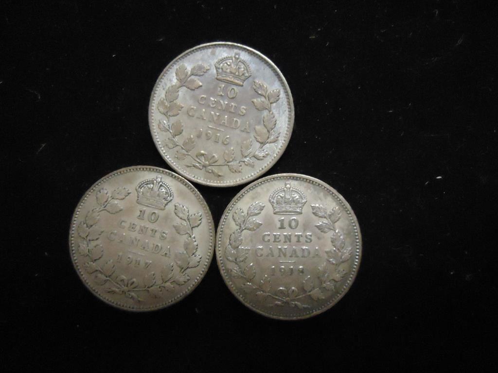 1916,17 & 1918 CANADA SILVER 10 CENTS