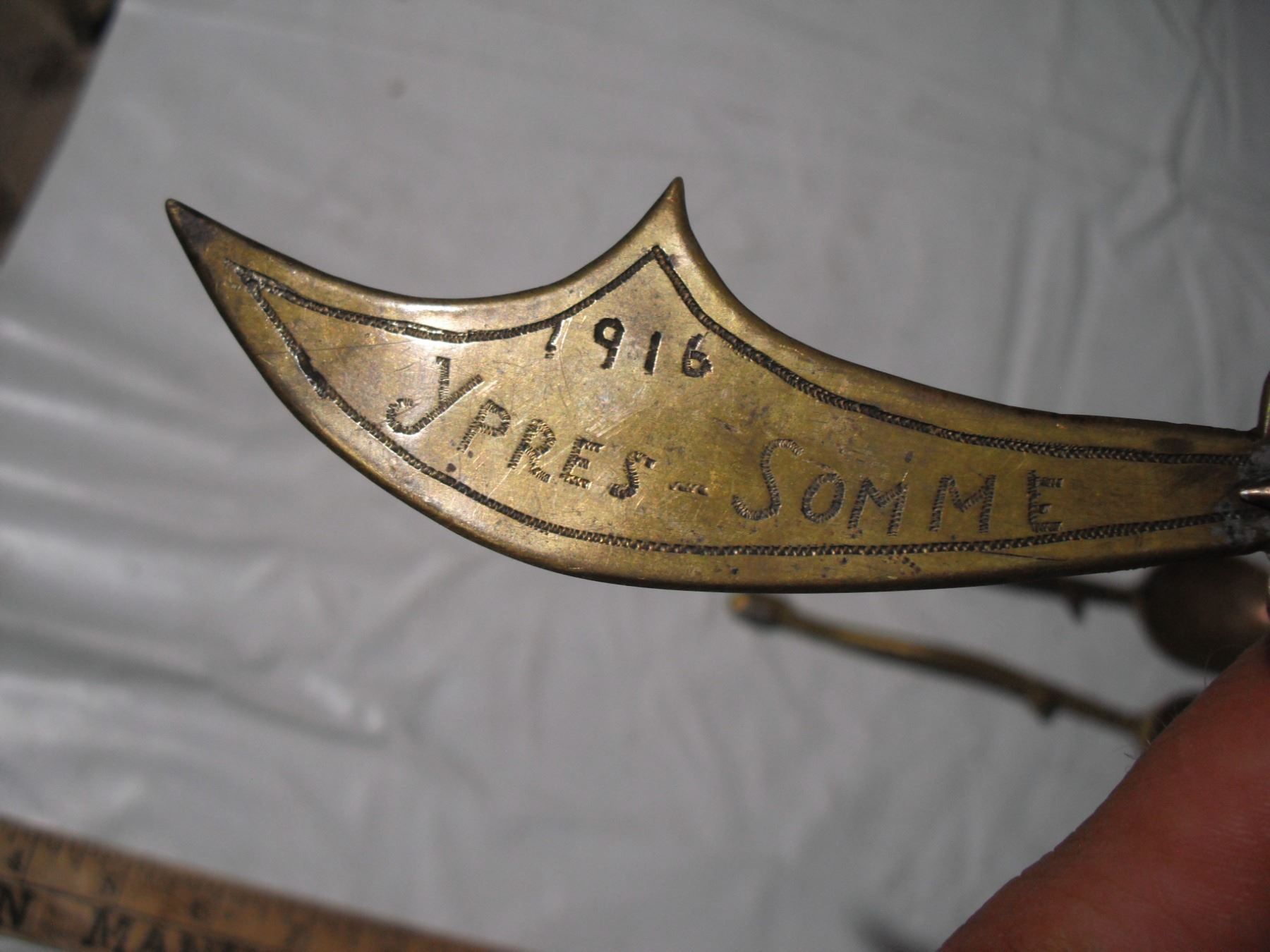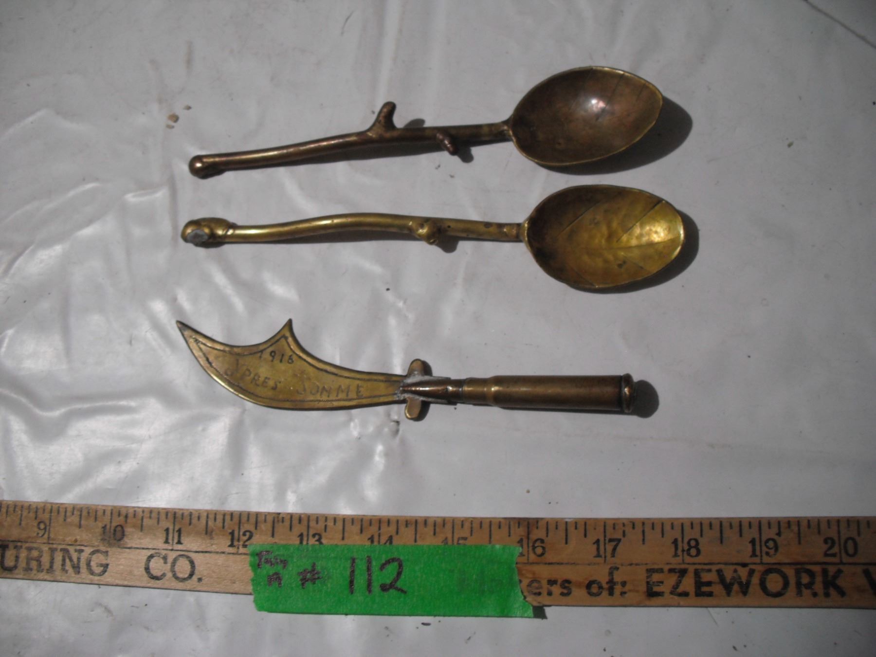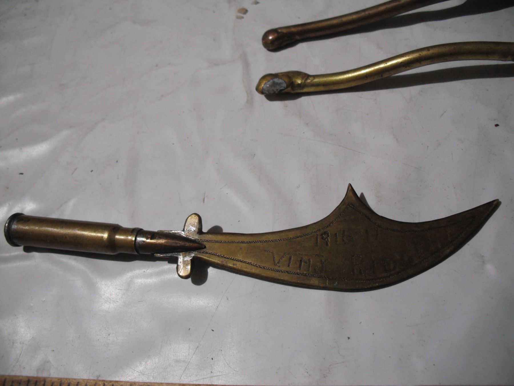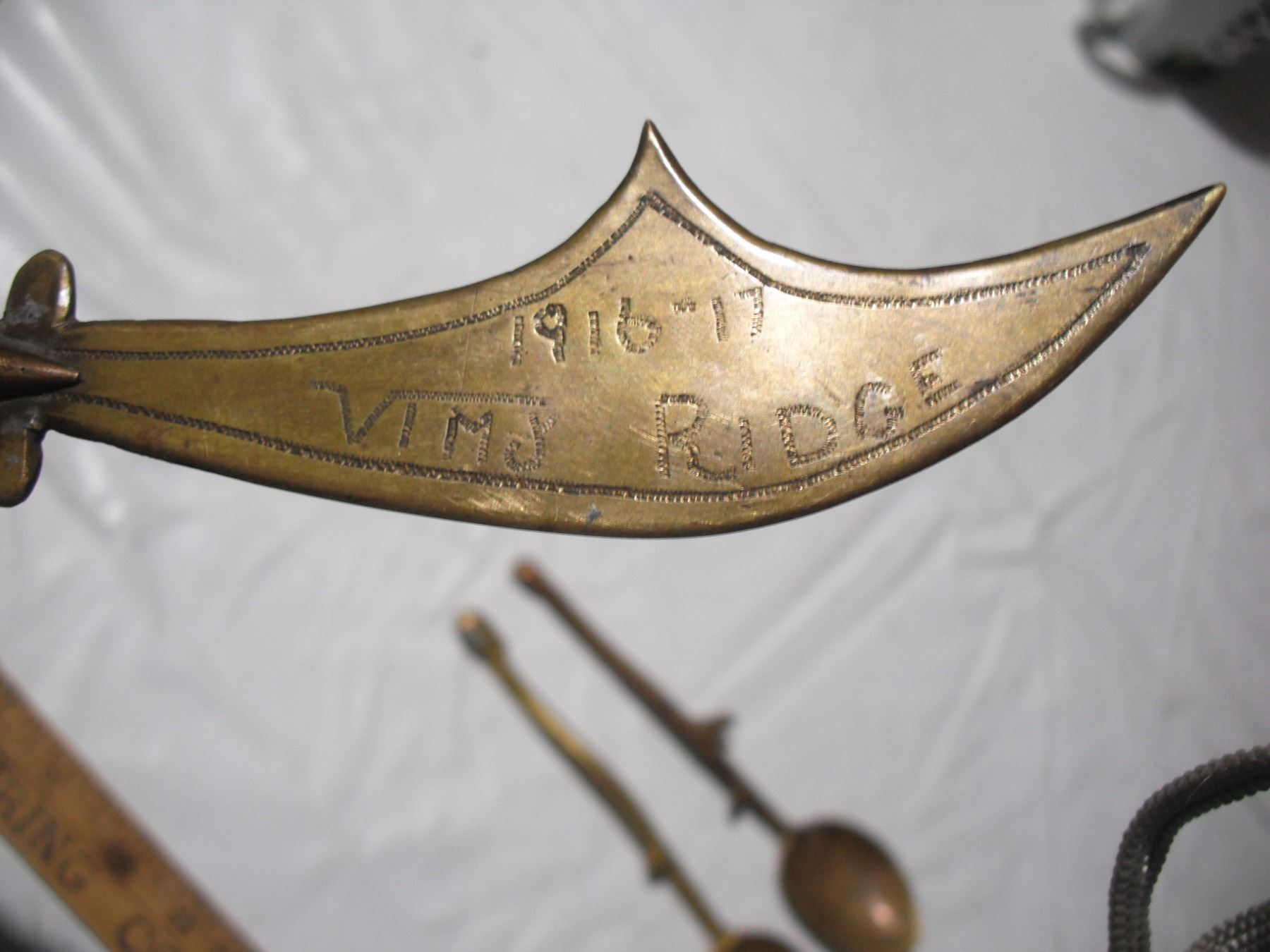1916-17 Trench art letter opener + unique brass spoons vimy ridge