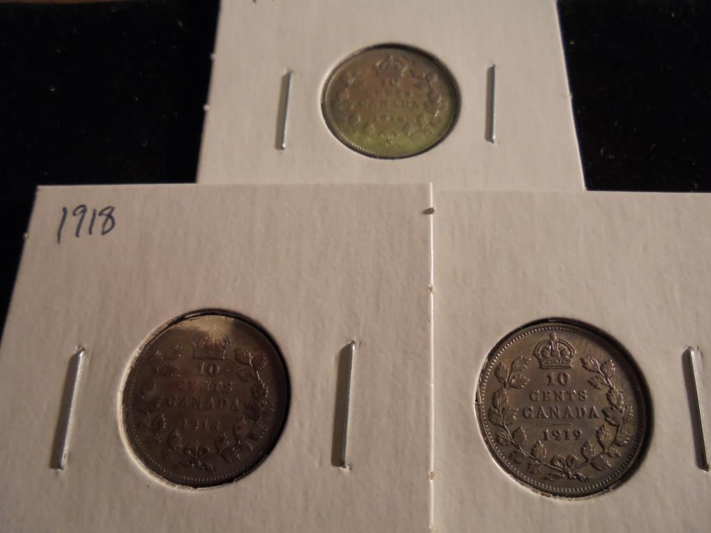 1916,18 & 19 CANADA SILVER 10 CENTS