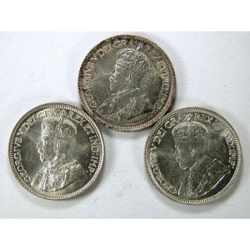 1916, 1918 and 1929. Three pieces, all Uncirculated, the 1916 with light-medium toning, the others pale