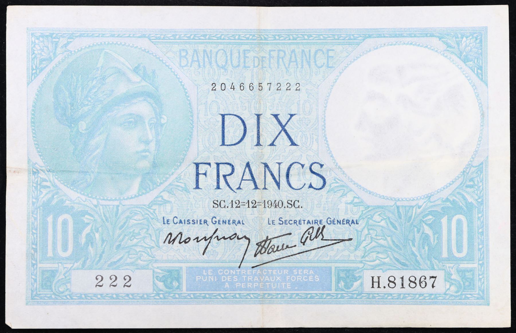 1916-1937 France 1 Franc Note P: 73C Grades xf.